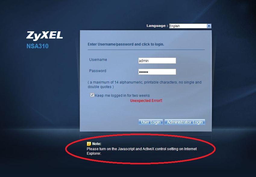Re: ZyXEL NSA 320 - nu mai pot intra ca Admin dupa update