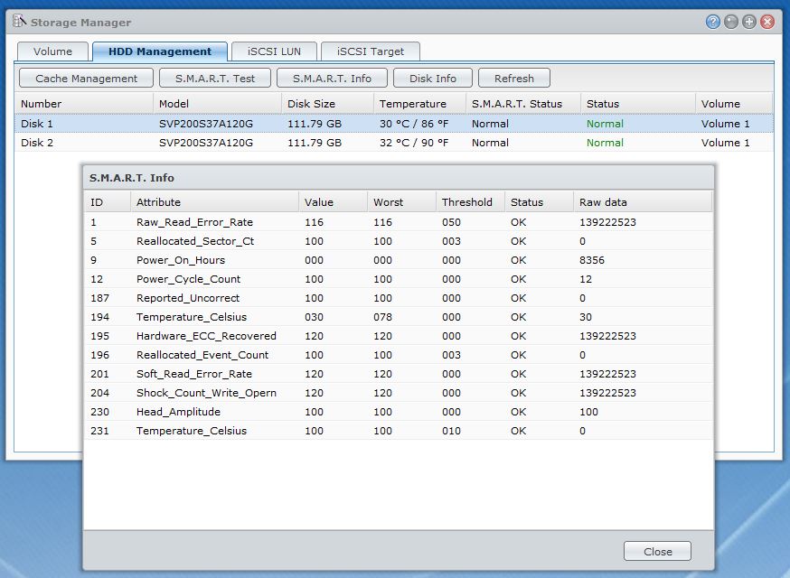 Eu am cumpărat două de astea: Flash SSD Kingston V300 2.5inch, 120GB, SATA 3 anul trecut de Black Friday și de atunci funcționează non-stop... deci non-stop în RAID 1, pe Synology, unde compatibilitatea nu era 100% asigurată, pentru că aceste modele nu figurau pe site-ul producătorului de NAS.