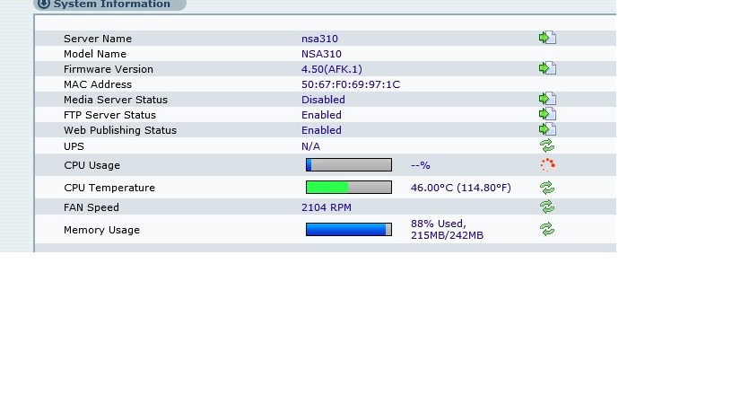 am dezactivat twonky -am crezut ca el tine memoria ocupata.nsa310 nu merge cu memeoria aproape de full. deabia intra in meniuri , se chinuie rau.