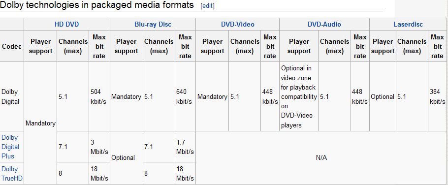 DD rata maxima pt BD - 640 kbit/s, DVD - 448 kbit/s